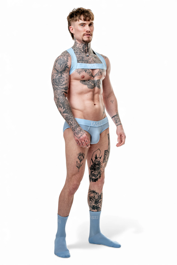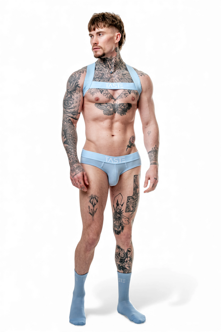Turn heads and feel confident with our stunning Candy Blue Brief, Harness & Socks Set from TASTE, crafted especially for gay men who know how to make a statement. This set is made for all body types, available in sizes XS to XXL, and delivers both comfort and sex appeal in one stylish package.