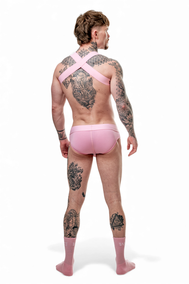Get ready to steal the spotlight with our irresistible Candy Pink Brief, Harness & Socks Set from TASTE, made exclusively for gay men who embrace both style and comfort. Available in sizes XS to XXL, this set is designed to enhance every body type, combining a sexy look with high-quality materials.