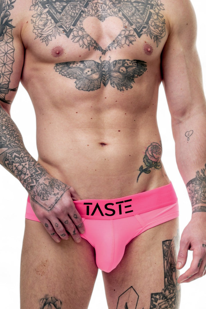 Crafted in Europe with high-quality, breathable fabric, the Neon Pink Briefs deliver both style and comfort. The sleek, form-fitting design hugs your body, enhancing your physique while providing ultimate freedom of movement. The eye-catching neon pink colour is impossible to ignore, making sure you stand out in the best possible way. The bold “TASTE” logo across the waistband adds an extra touch of attitude, giving your look that perfect finishing touch of sexy flair.