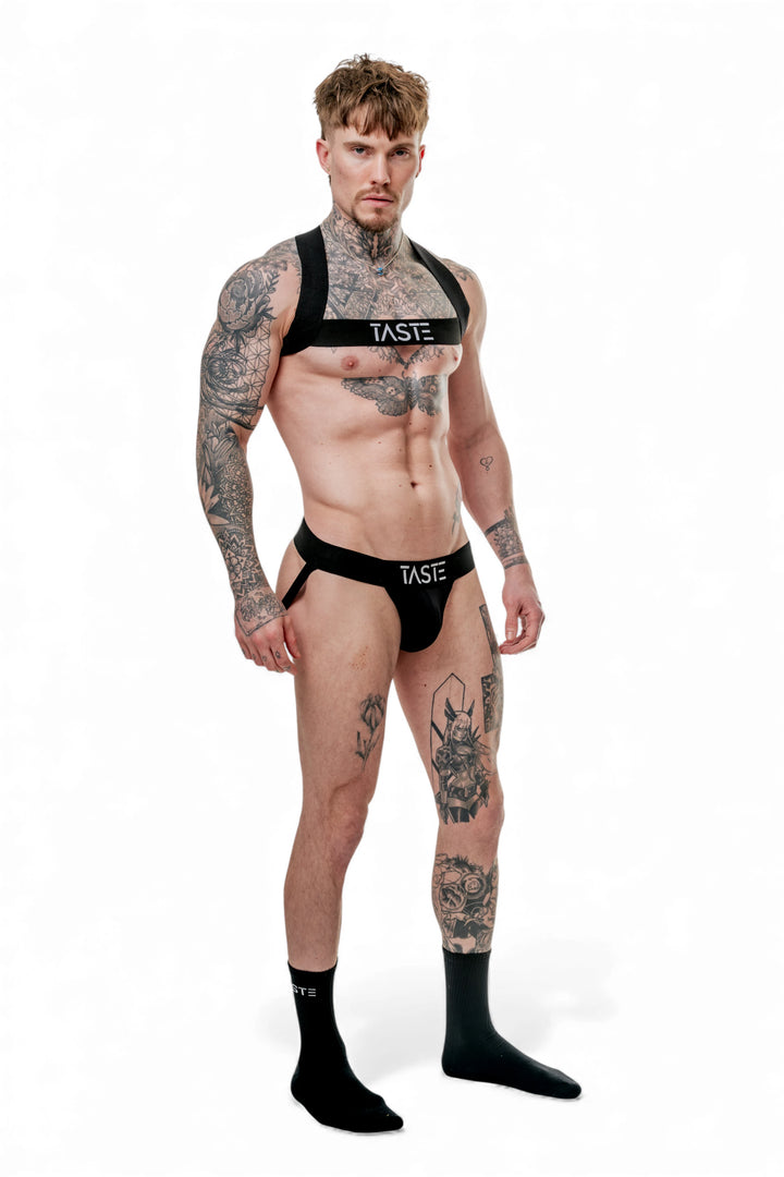 Signature Black Harness: The bold black harness, featuring the TASTE logo, adds an extra layer of confidence to your look. It’s perfect for showing off your physique and making a bold statement wherever you go.