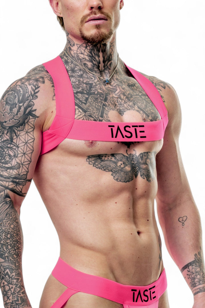 Crafted in Europe with the finest materials, the Neon Pink Chest Harness delivers both comfort and style. The elastic straps are designed to hug your body perfectly, enhancing your physique while offering the freedom to move. The eye-catching neon pink colour commands attention, giving off a vibrant, energetic vibe that’s impossible to ignore. The iconic “TASTE” logo across the chest adds a cheeky touch, letting everyone know you’re here to make a bold impression.