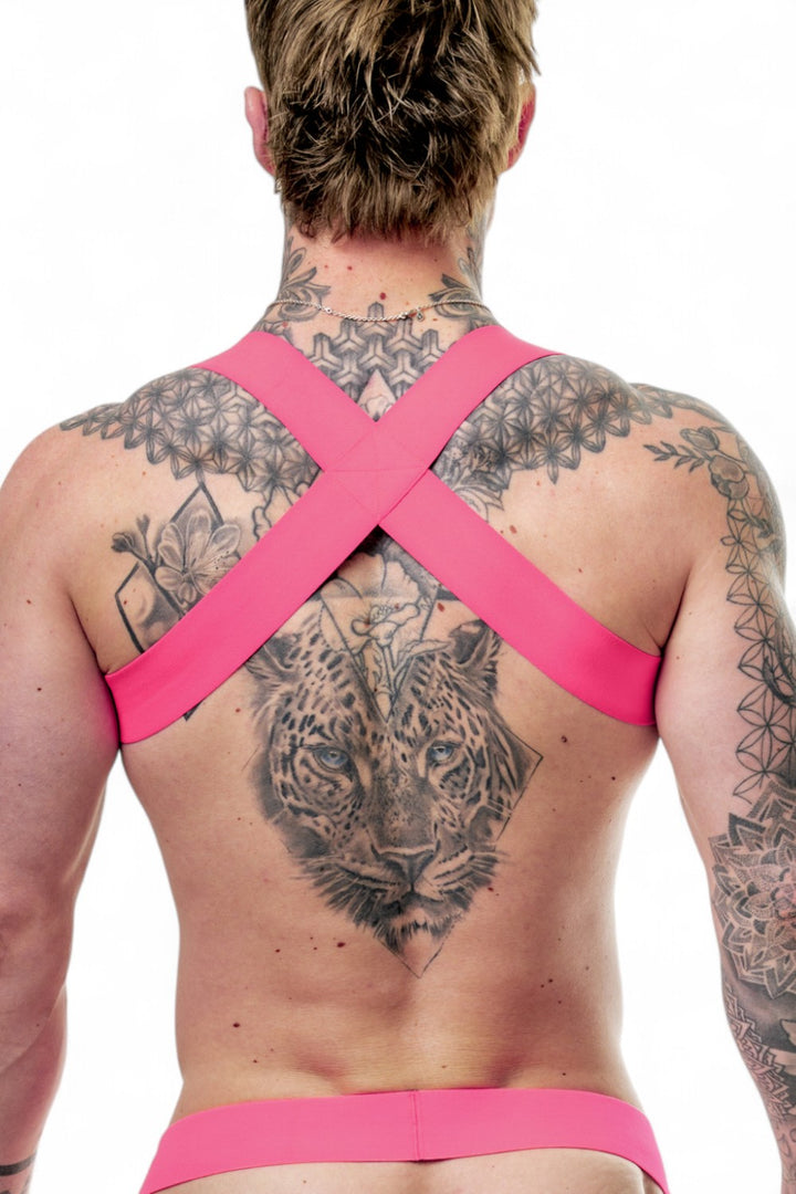 Complete your look by pairing the Neon Pink Chest Harness with matching neon pink jockstraps, briefs, or socks for a coordinated, head-turning outfit.